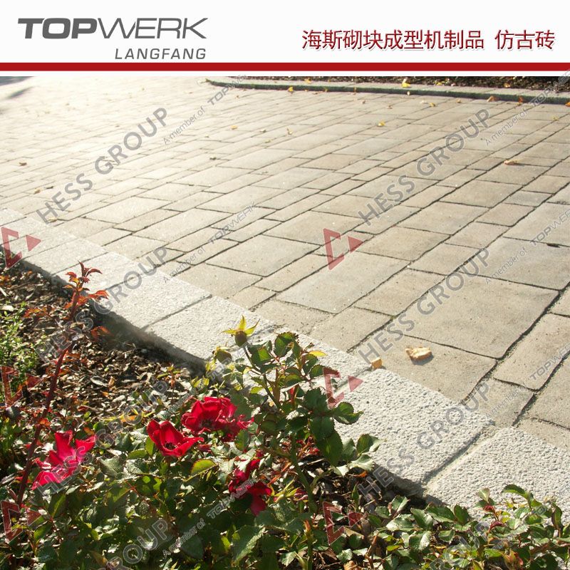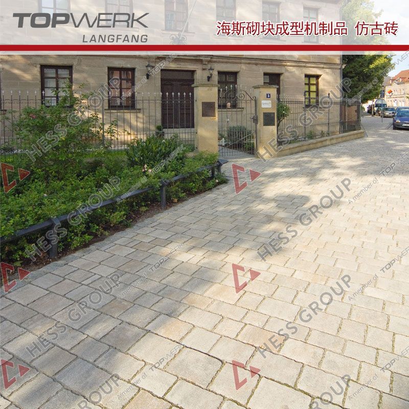 HESS海斯RH1400全自动制砖机通过变换模具可生产多种混凝土建筑砌块,如:PC仿石砖、透水砖、建筑垃圾再生砖、马路砖、路沿石、劈裂砖、复古砖、混色路面砖以及各种用于公园、机场、码头等不同用途的特种混凝土构件。