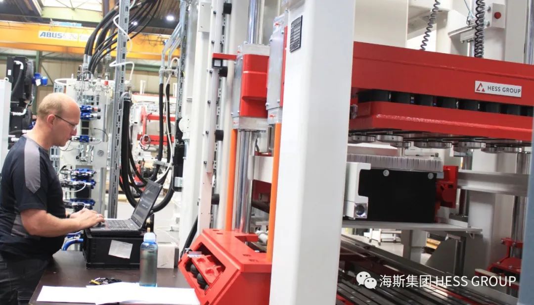 和其他任何设备一样,海斯集团的这款 RH 2000-4 MVA 砌块机完成了发货前的测试。海斯电气工程师连接电气面板,液压工程师连接液压动力组件。设备可以在手动模式和自动模式下运行,并处于正常的工作状态。所有主要功能在发货前都要进行测试,出厂时,设备的机械部件和电气部件都要确保测试无误。